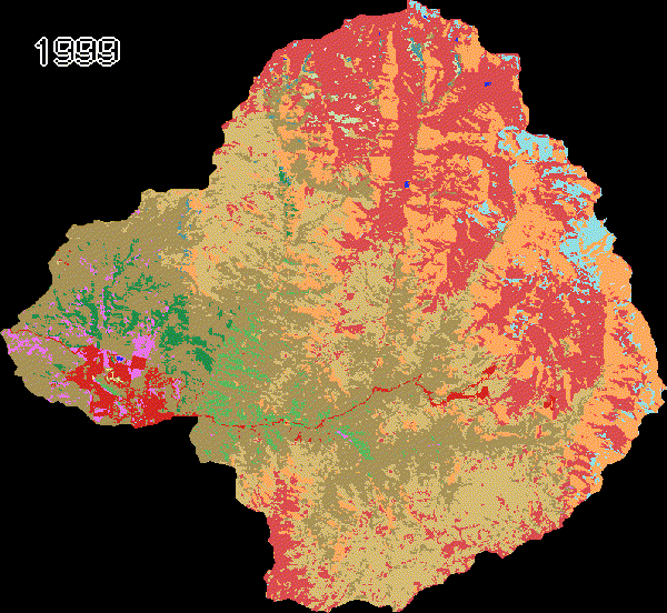 Animación que muestra la evolución de la cobertura vegetal en la comuna de Lo Barnechea según datos de MapBiomas Chile.