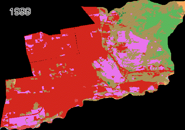 Animación que muestra la evolución de la cobertura vegetal en la comuna de Puente Alto según datos de MapBiomas Chile.