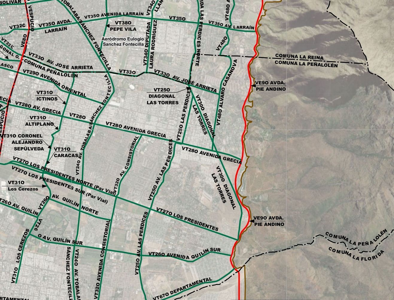- eliminar los trazados proyectados de Pie Andino y Rojas Magallanes,