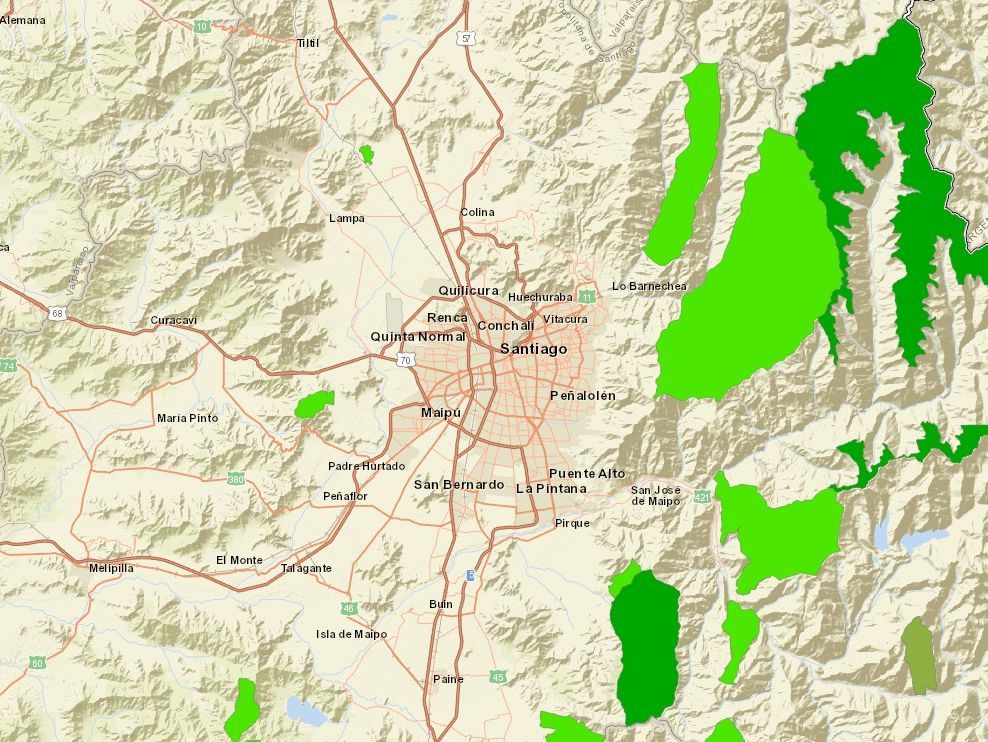 Mientras Lo Barnechea posee más de 50000 ha de Santuarios de la Naturaleza, comunas como La Florida y Puente Alto no tienen ninguna.