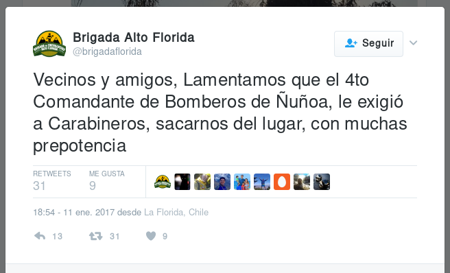 Sin embargo, su trabajo se ha visto obstaculizado por el municipio de la Florida y por los propios bomberos del todopoderoso Cuerpo de Bomberos de Ñuñoa, los que miran con celos el actuar de la Brigada, y una posible fuga de socios hacia este tipo de iniciativas independientes. A tal punto ha llegado esto, que en el último incendio registrado cerca de la Quebrada de Macul, los bomberos estaban impidiendo el paso de la Brigada al lugar del siniestro.